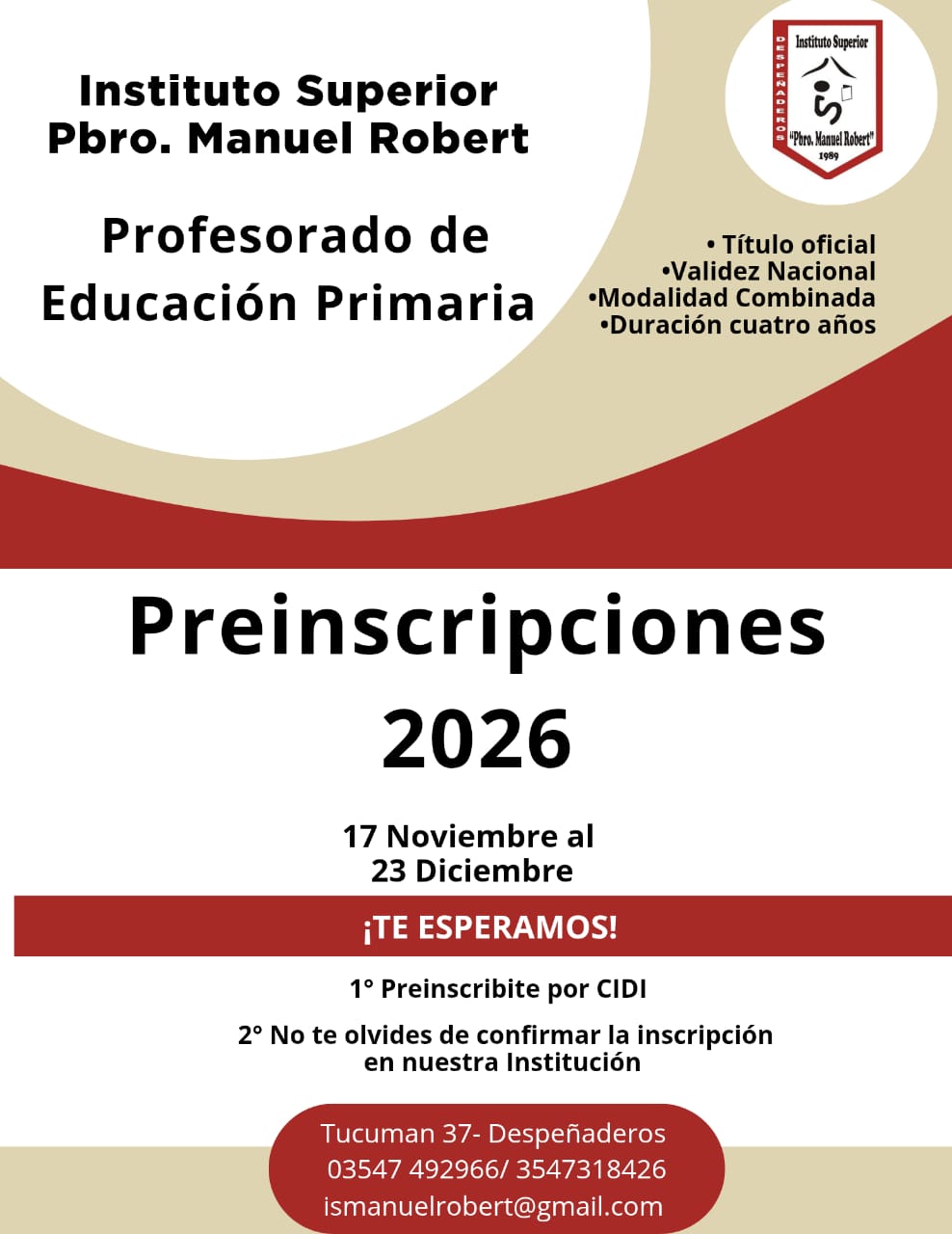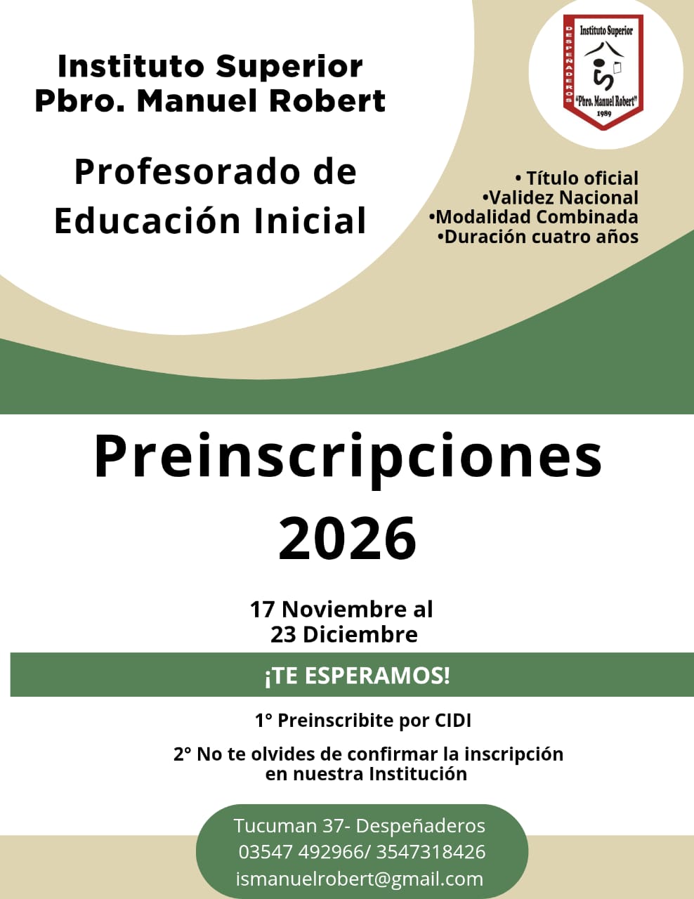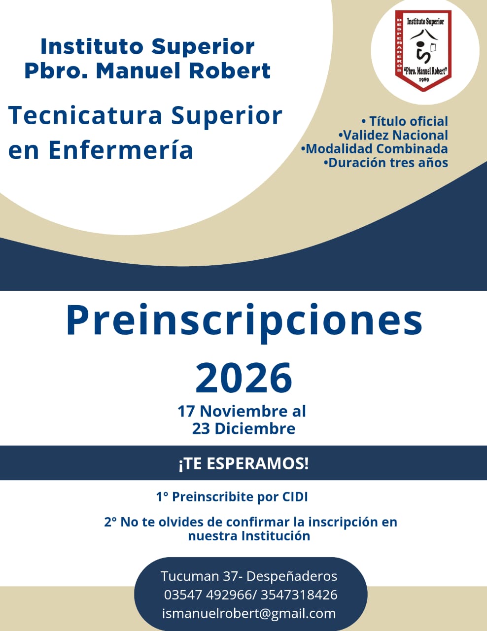 INGRESO 2026 Profesorado de Educación Inicial Profesorado de Educación Primaria Tecnicatura Superior en Enfermeria